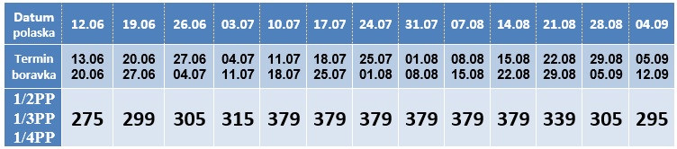 - Dete od 2-10 godina, na zajedničkom ležaju u pratnji 2 odrasle osobe ostvaruje 50% popusta.