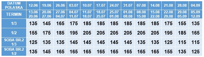 - Doplata za polazak iz Jagodine, Ćuprije, Paraćina, Aleksinca 10 eur po osobi.