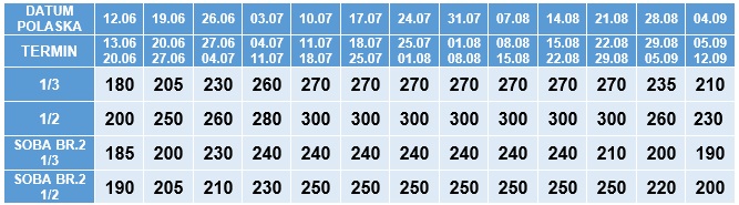 - Doplata za polazak iz Vranja, Vladičinog Hana i Leskovca 20 eur po osobi.